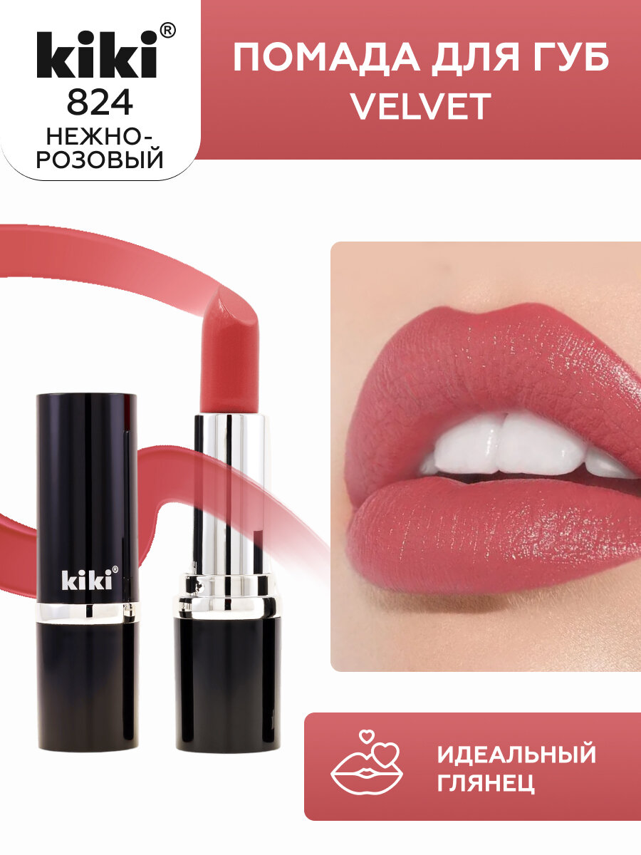 Губная помада kiki VELVET, тон 824, нежно-розовый, кремовая текстура, увлажняющая, стойкая, стик 257 ₽