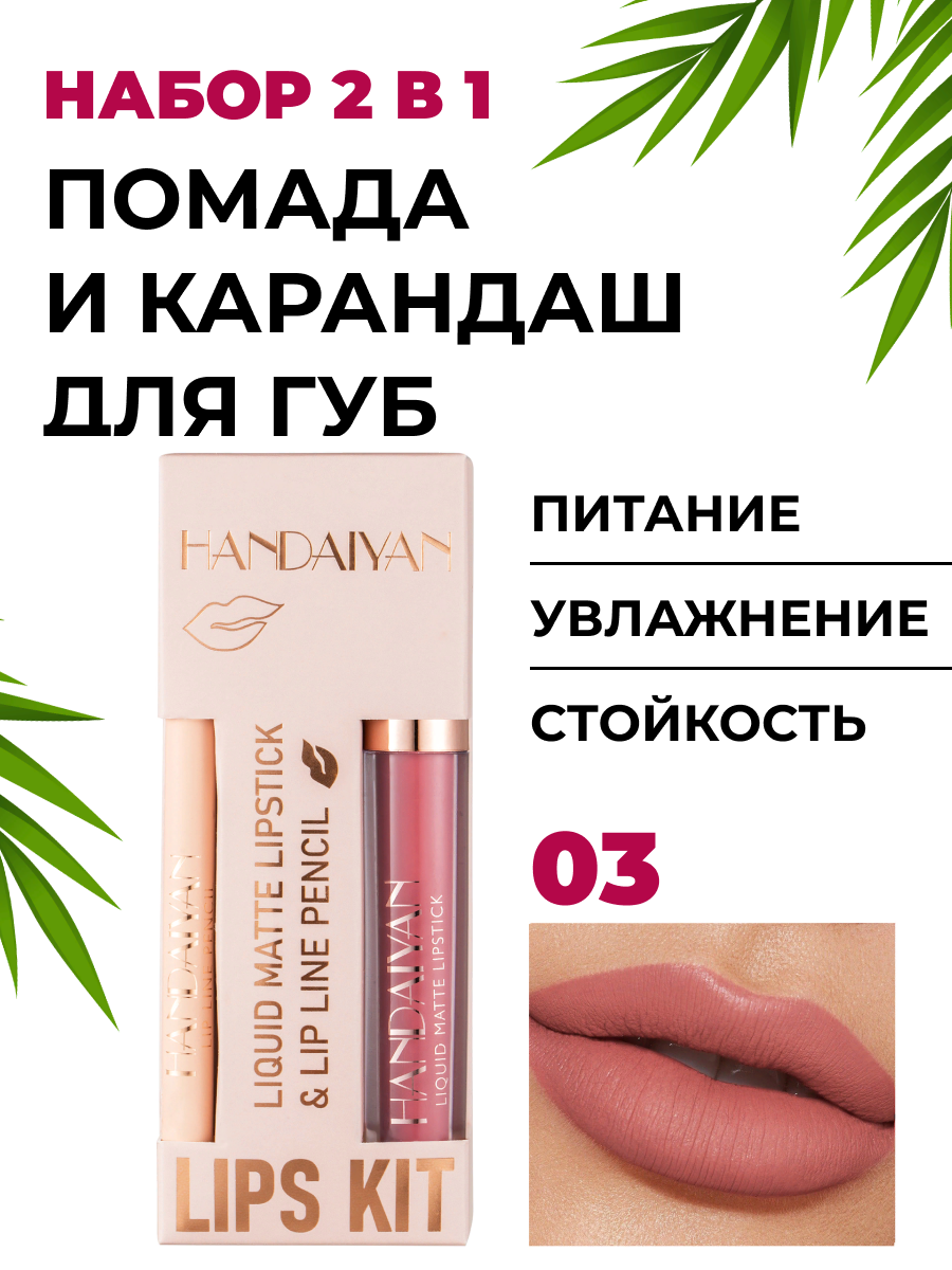 Помада и карандаш 2 в 1 - матовый, сатиновый, стойкий - набор для губ, 03 информация: