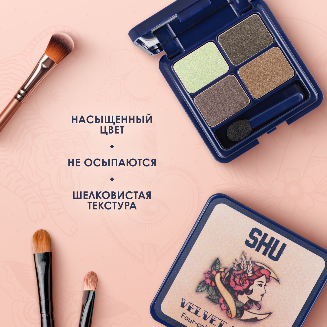 10 цен на SHU Четырехцветные тени для век VELVET MOON №153, теплый зеленый