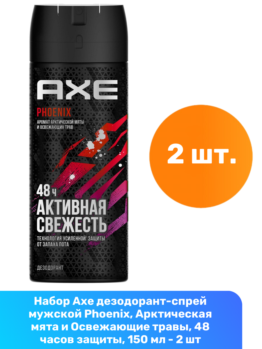 Axe дезодорант-спрей мужской Phoenix, Арктическая мята и Освежающие травы, 48 часов защиты, 150 мл - 2 шт информация: