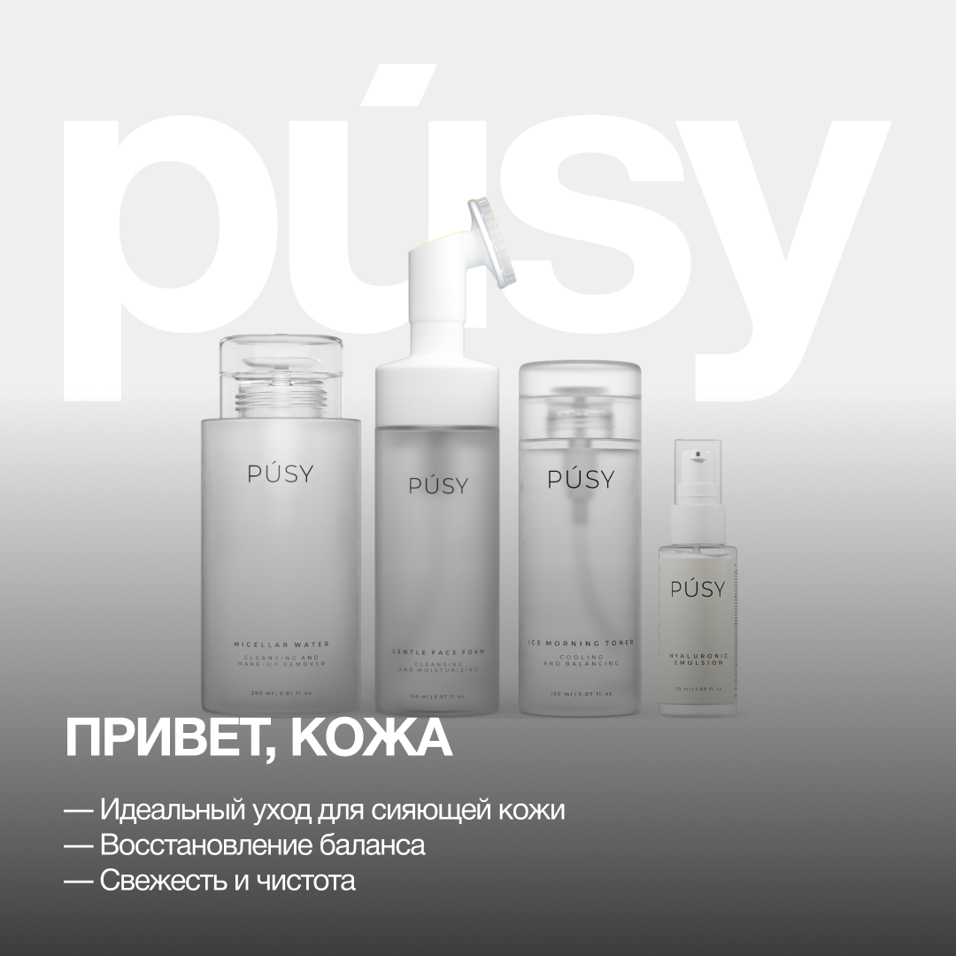 | В наборе | Утренний охлаждающий тоник, эмульсия для лица гиалуроновая, пенка для умывания, мицеллярная вода |