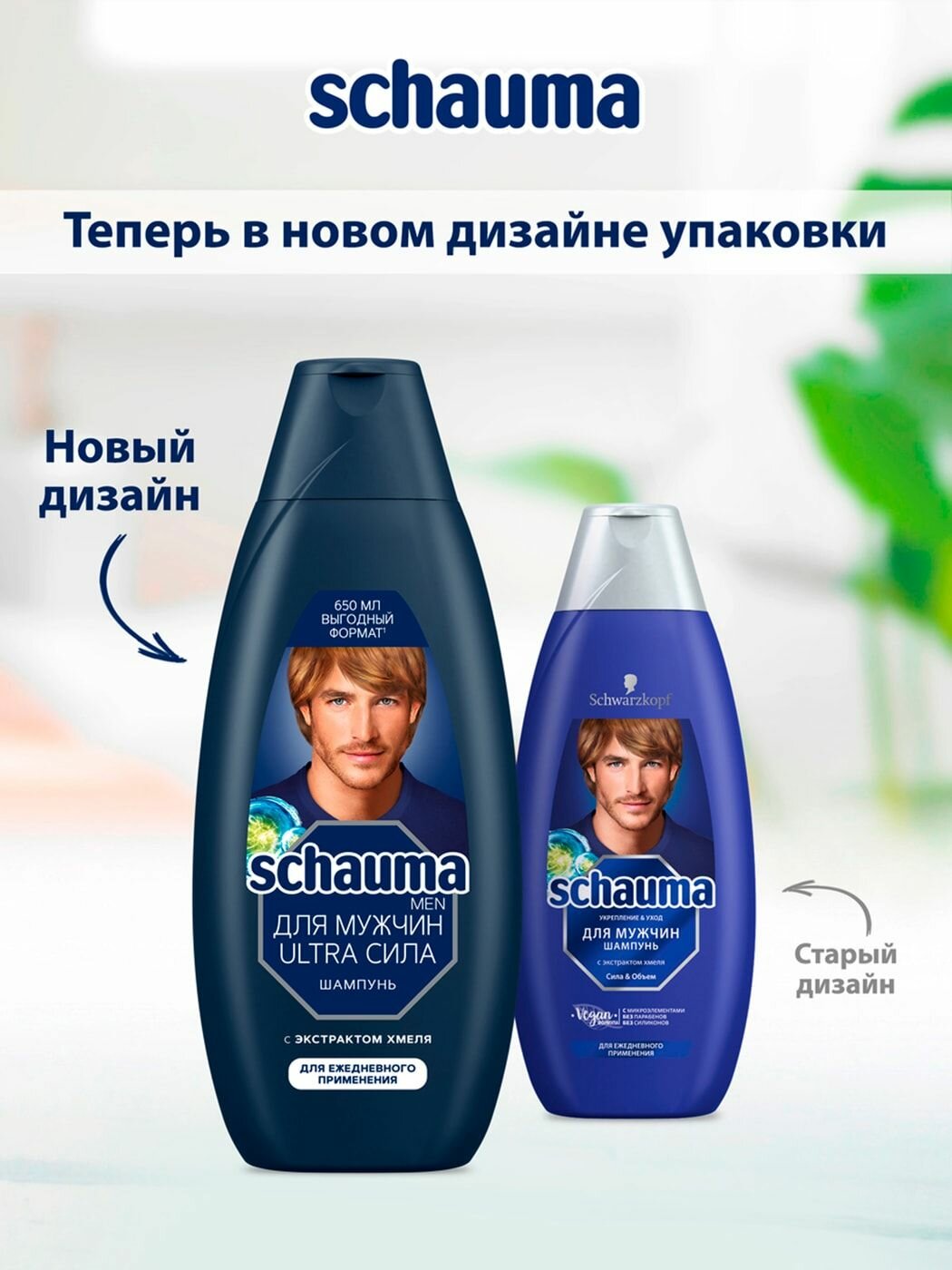 Шампунь для мужчин Шаума Men Ultra Сила, с экстрактом хмеля, для ежедневного применения, 650 мл