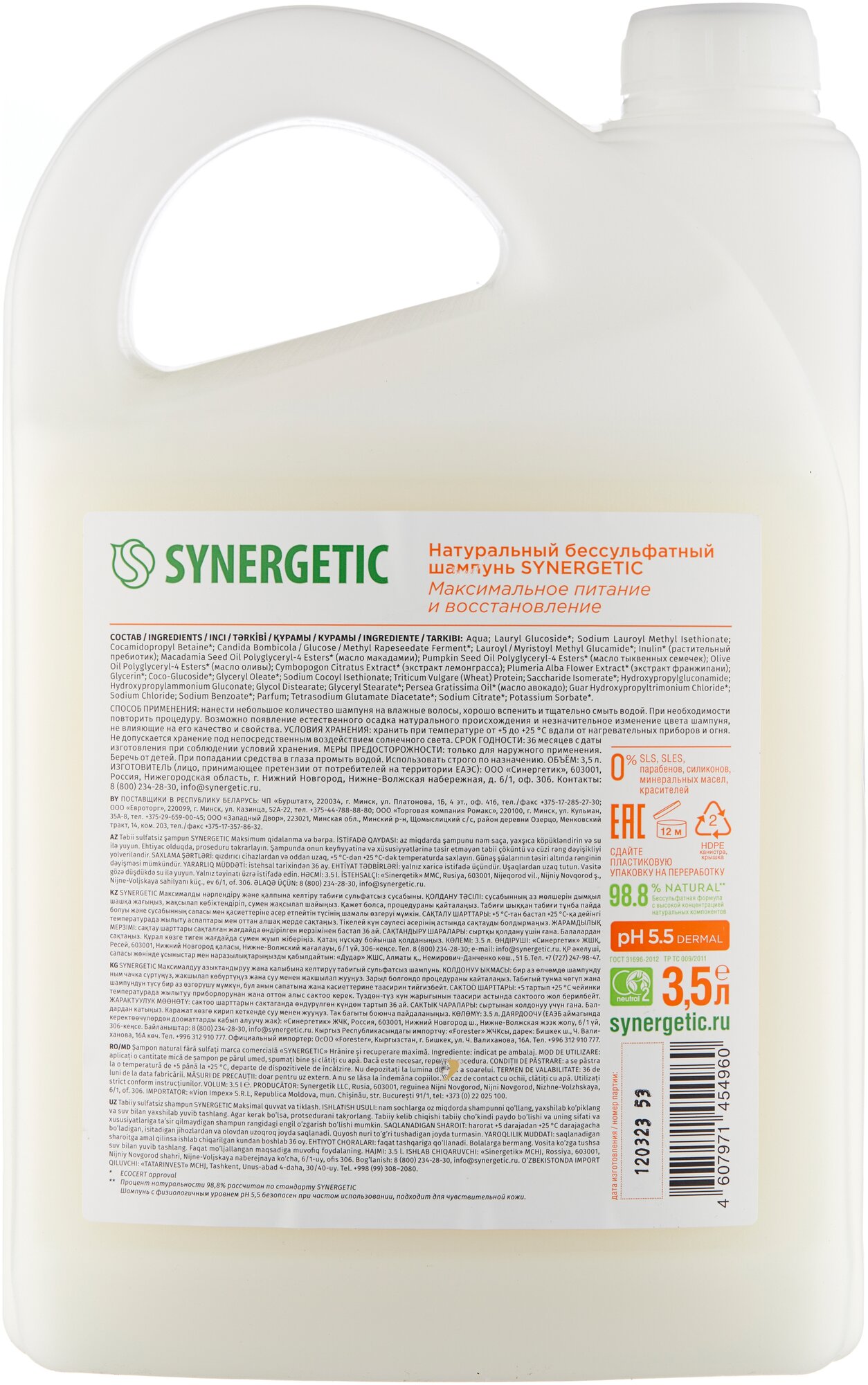 10 цен на Synergetic Шампунь для волос Максимальное питание и восстановление 3.5 л