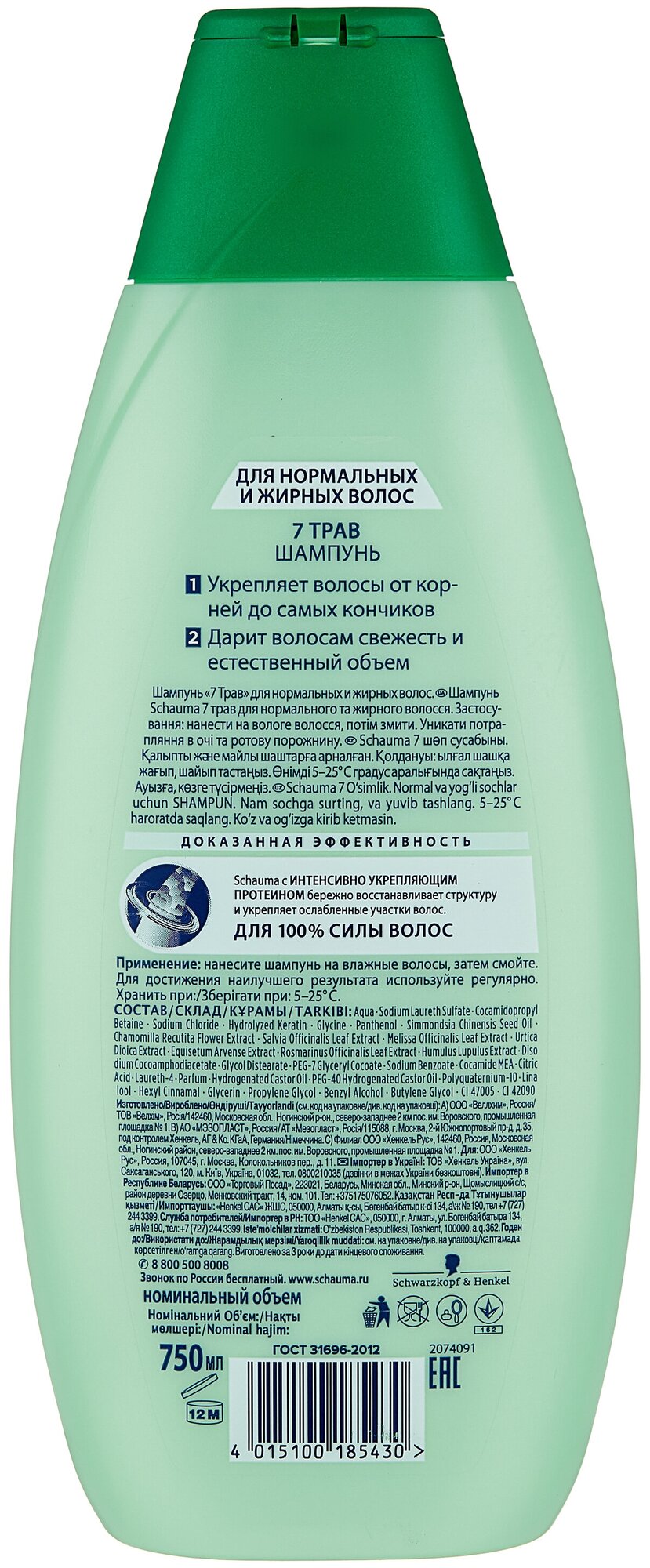 Шампунь Schauma 7 трав для нормальных и жирных волос 750 мл информация: