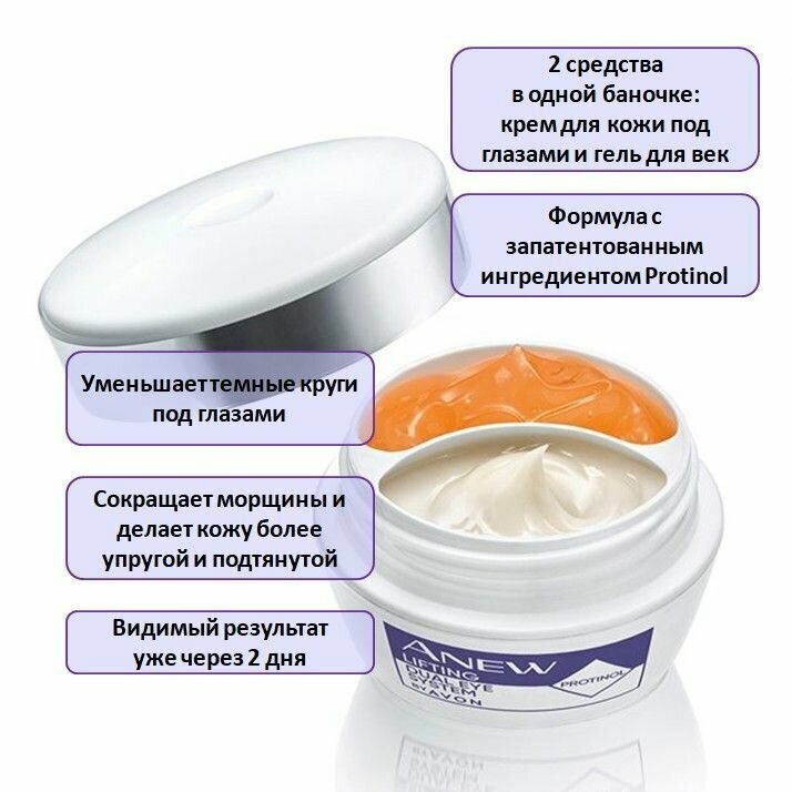 Лифтинг-эффект Avon система 2 в 1 для кожи вокруг глаз: крем и гель Anew, 20 мл / От темных кругов и мешков под глазами / От отёков под глазами