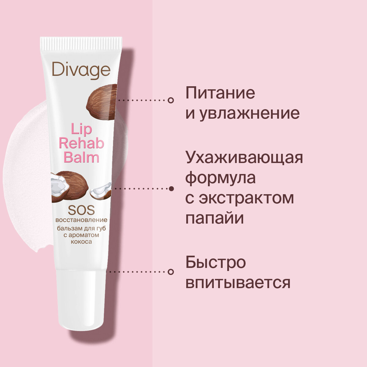 Divage Бальзам для губ Lip Rehab Balm с ароматом кокоса информация: