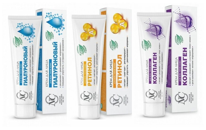 10 цен на Набор кремов для лица Гиалуроновый+Ретинол+Коллаген для всех типов кожи 40 мл.