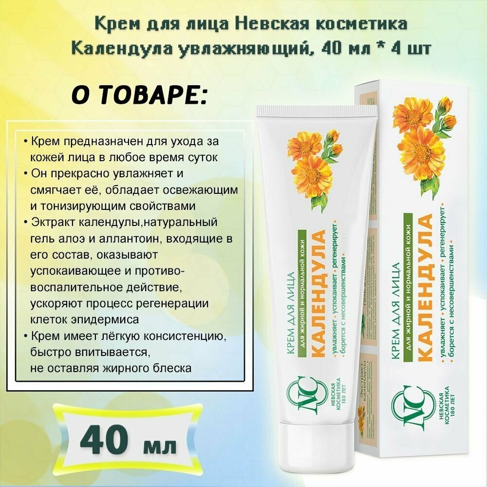 Крем для лица увлажняющий Невская Косметика Календула 40 мл. х 4 шт. информация: