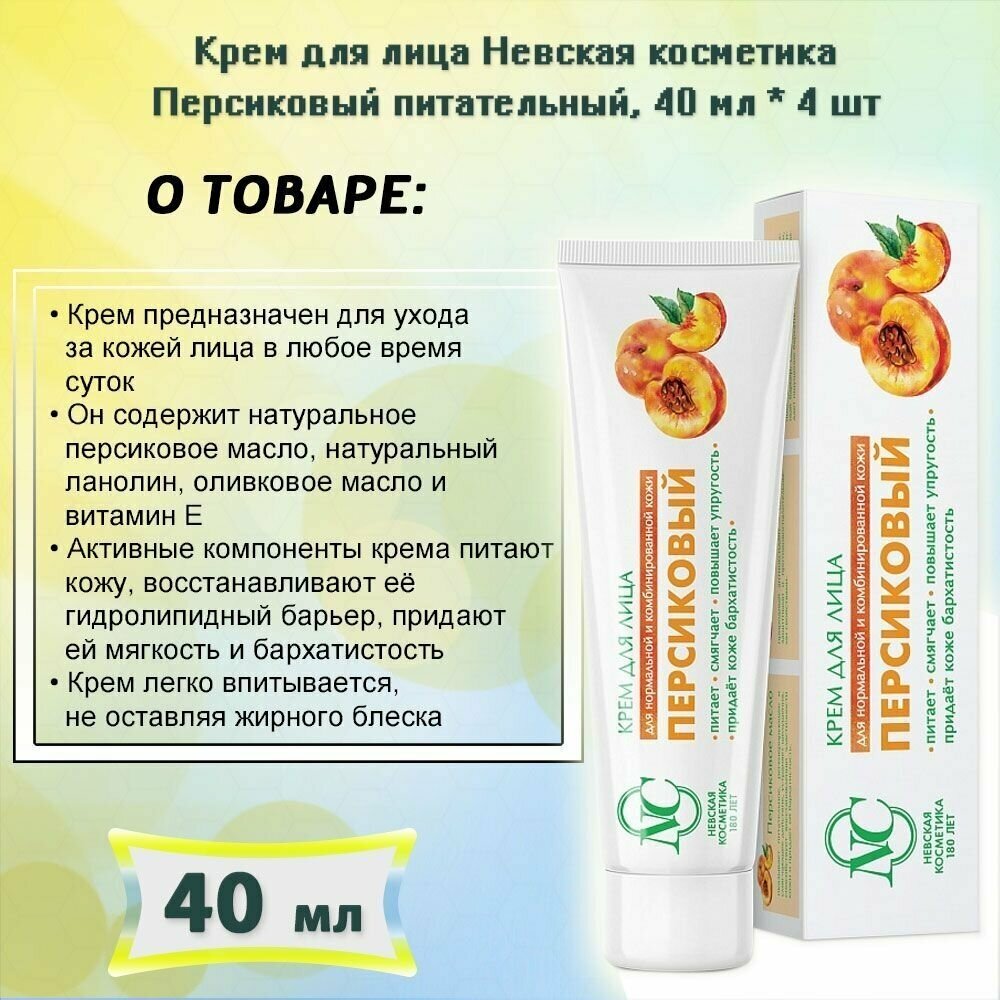 Крем для лица питательный Невская Косметика Персиковый 40 мл. х 4 шт. информация:
