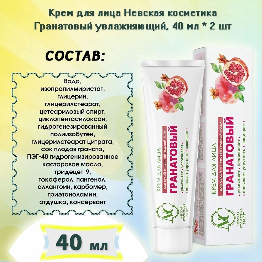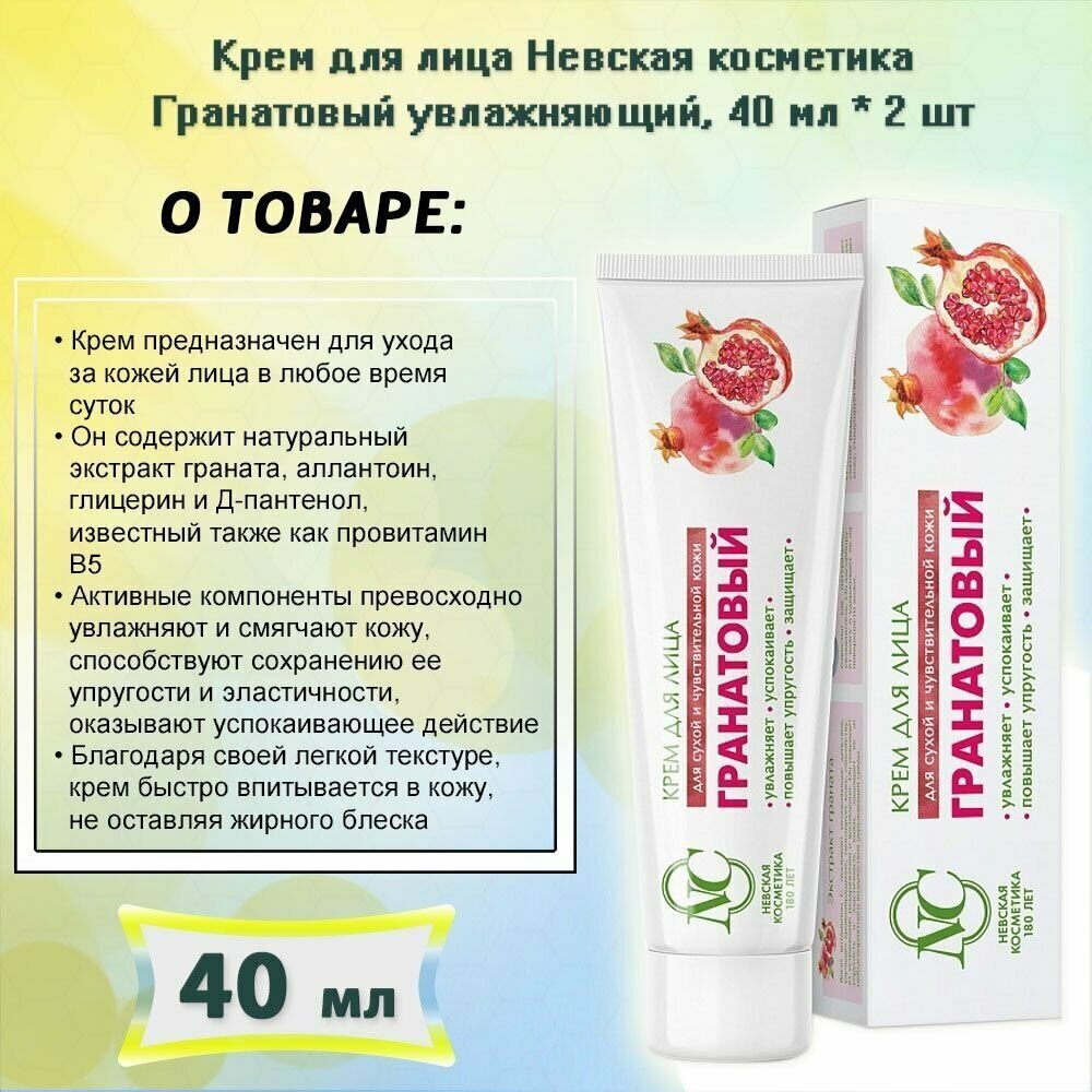 Крем для лица Невская Косметика Гранатовый 40 мл. х 2 шт. информация: