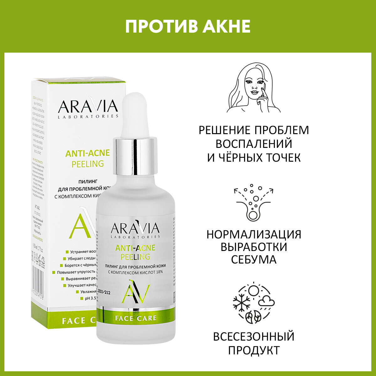 10 цен на ARAVIA Пилинг для лица для проблемной кожи с комплексом кислот 18% Anti-Acne Peeling, 50 мл