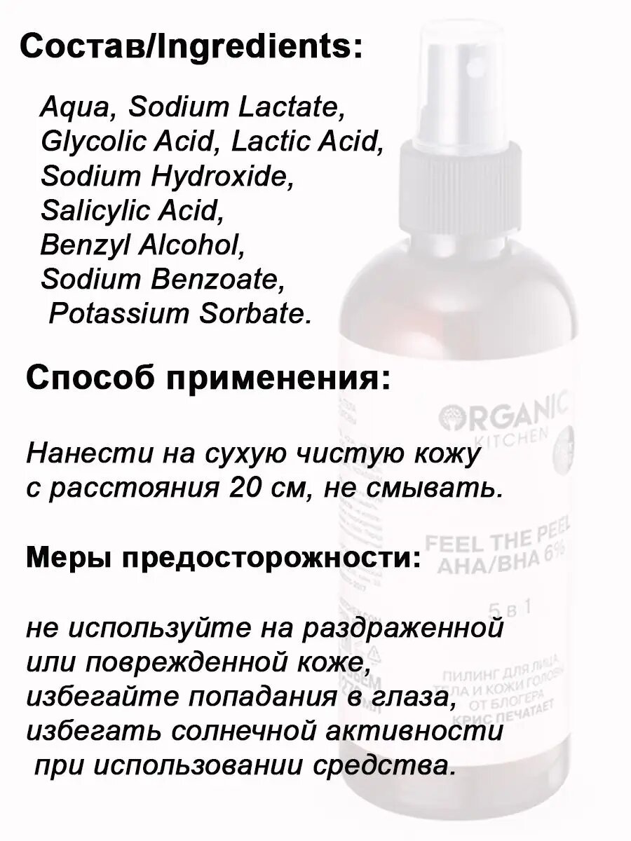 10 цен на Organic Kitchen Пилинг 5в1 для лица тела кожи головы AHA/BHA 6% 270 мл