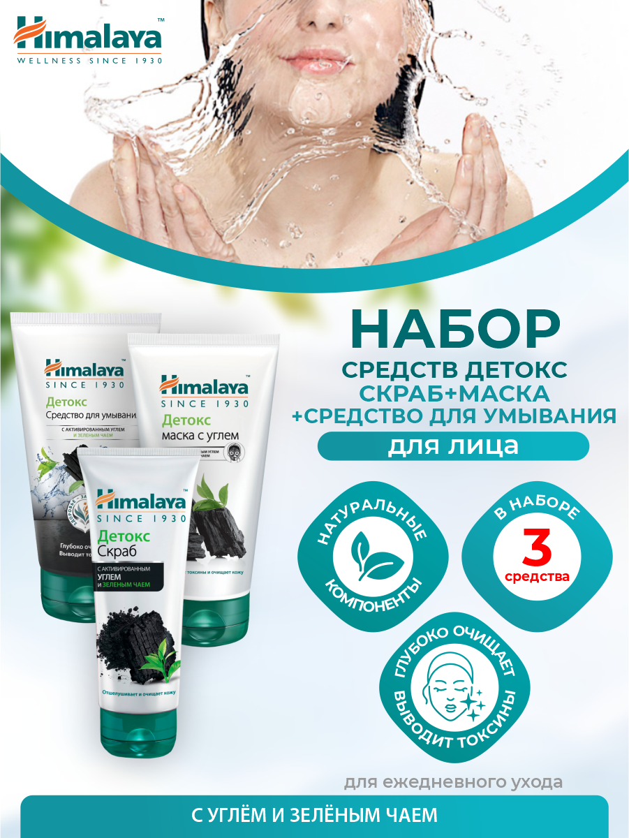 Набор средств детокс Himalaya с активанным углём и зелёным чаем Скраб + Маска + Ср-во для умывания информация: