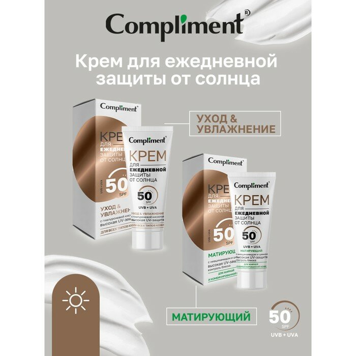 Крем для лица Compliment солнцезащитный Матирующий SPF50 50мл информация: