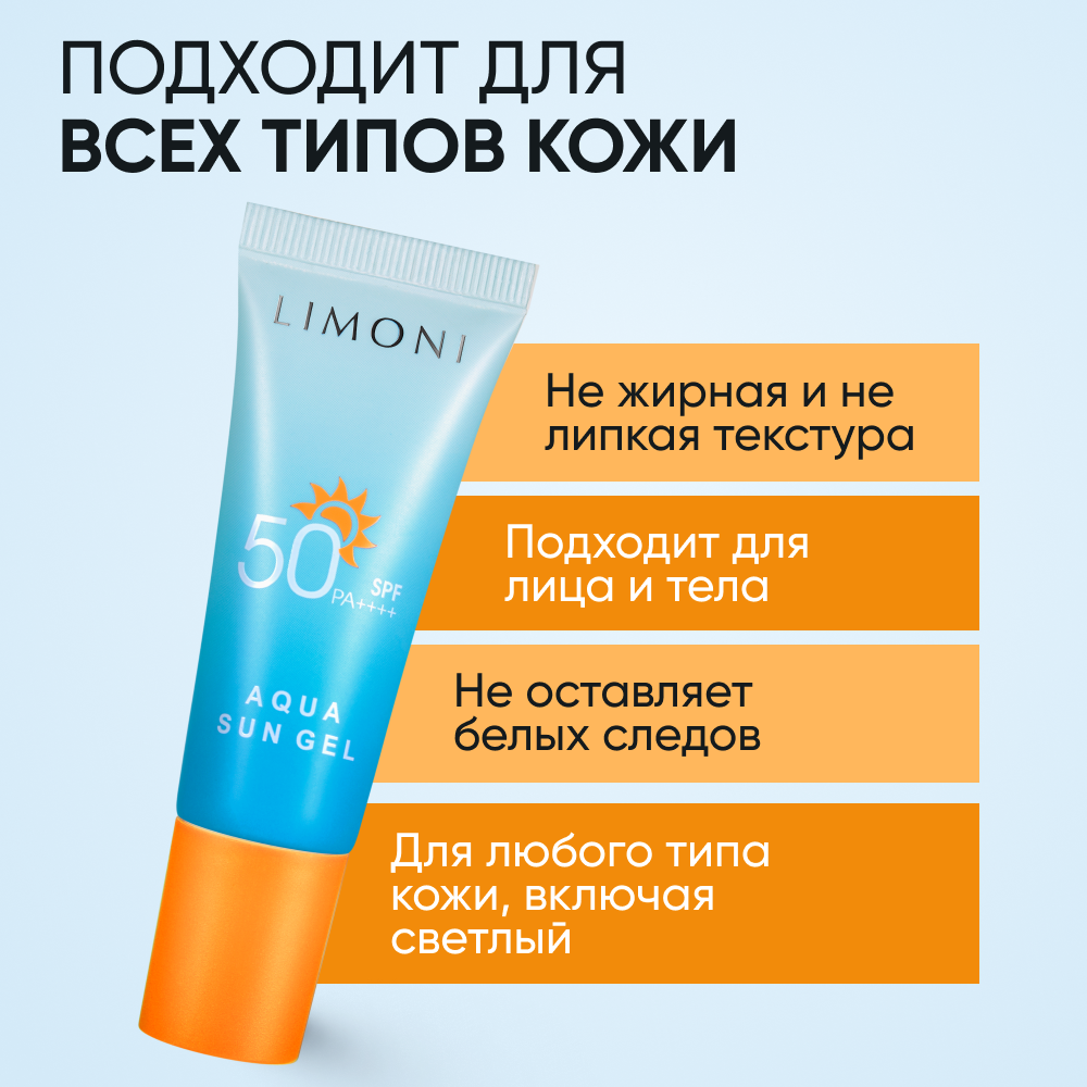 10 цен на LIMONI Солнцезащитный увлажняющий крем-гель для лица и тела SPF 50+ 25 мл