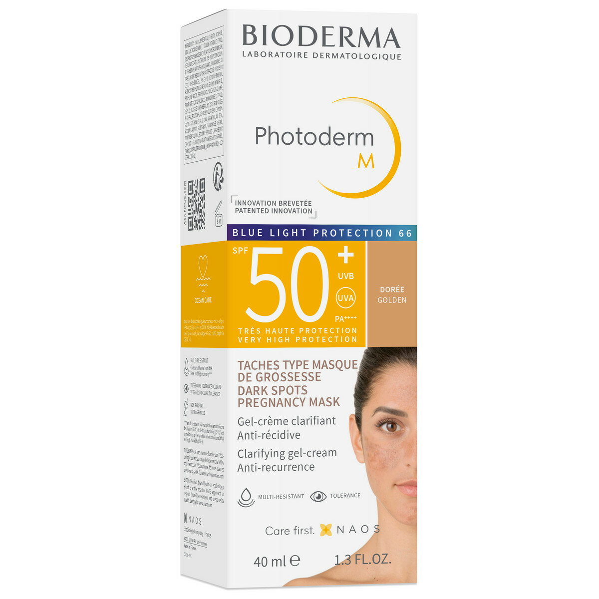 | Дополнительная информация | Очень высокая степень защиты для чувствительной кожи с гиперпигментацией ("маска беременности") с тоном. Степень защиты от голубого излучения 61. "Маска беременных" - это пигментация, вызванная реакцией кожи на солнечные лучи синего спектра. Защищает от UVB, UVA; PA++++. Выравнивает тон кожи, осветляет, предотвращает повторное появление пигментных пятен (благодаря глабридину в составе). Высокая концентрация пигментов блокирует голубой свет на 61%. Эффективность подтверждена клиническими исследованиями. Средство прошло дерматологический и офтальмологический контроль (хорошо переносится кожей и слизистой глаз). Матирующая текстура крем-геля с пудровым финишем. Высокая покрывающая способность без эффекта "маски". Без отдушки. |