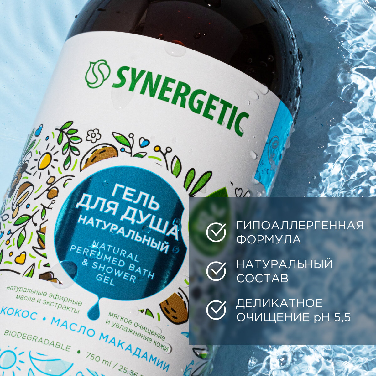10 цен на Гель для душа SYNERGETIC "Кокос и масло макадамии" увлажняющий, натуральный, 750мл