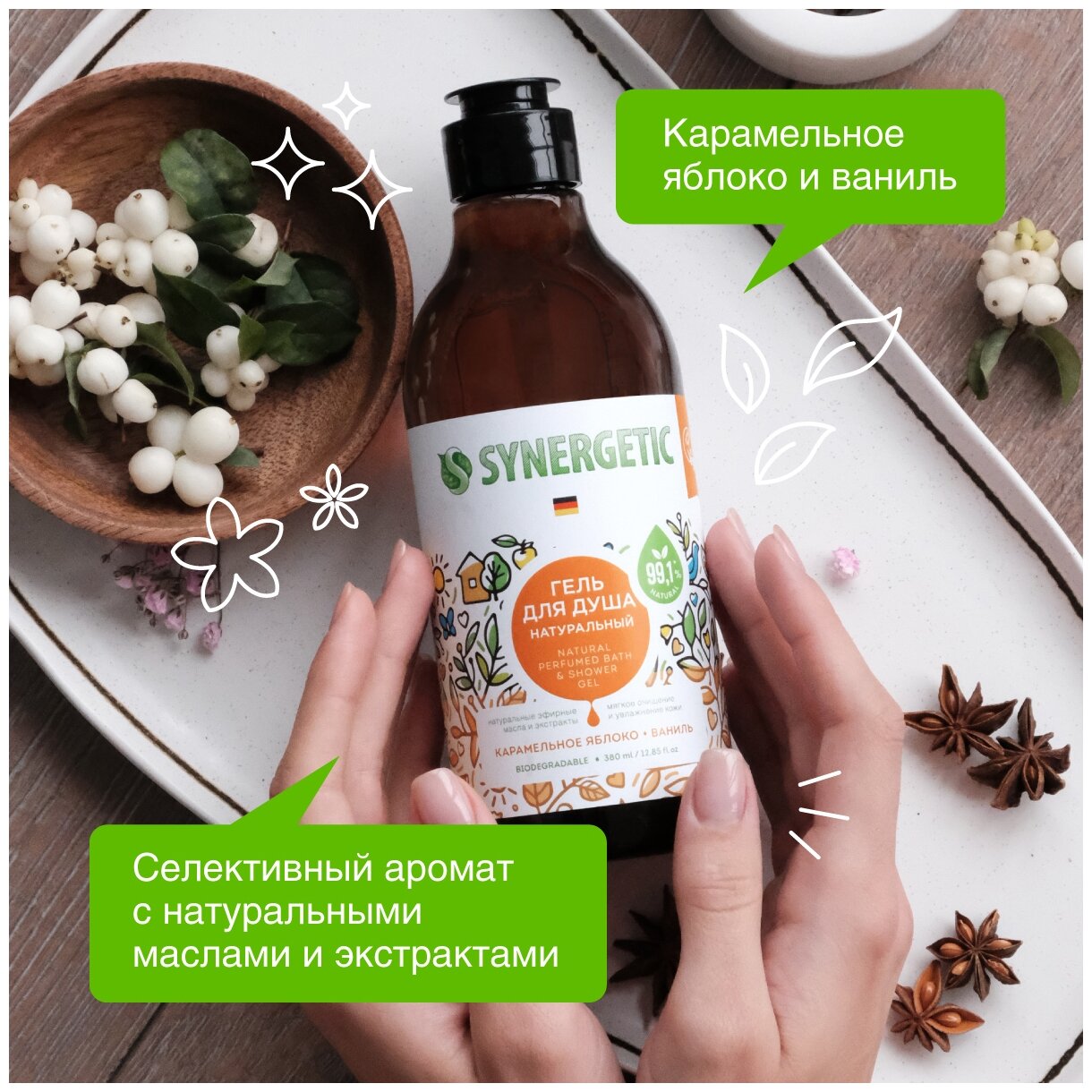 Гель для душа SYNERGETIC, биоразлагаемый, со вкусом карамельного яблока и ванили, 380 мл