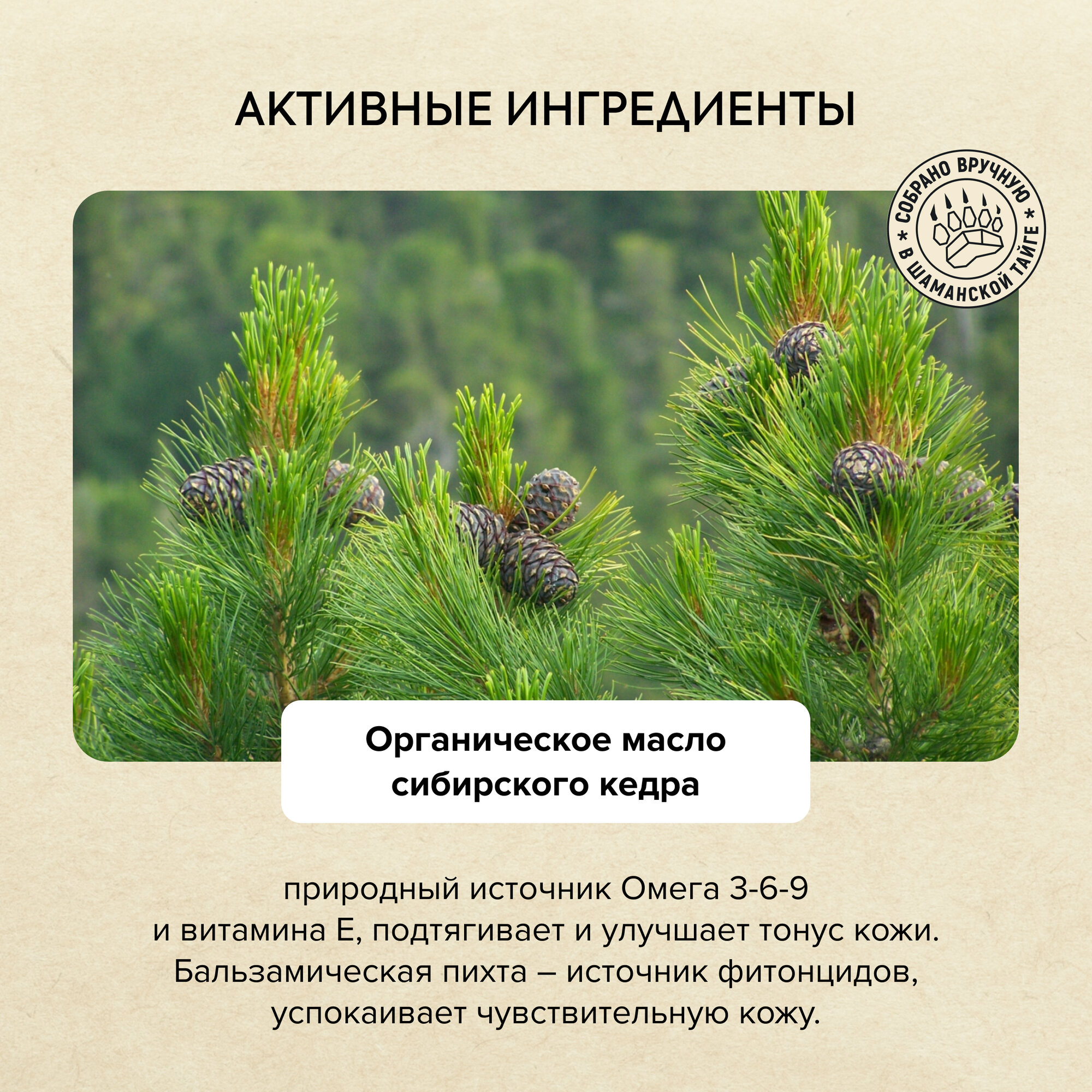 | Состав | aqua with infusions of organic cedrus atlantica wood oil (органическое масло кедра), organic abies balsamea needle oil (органическое масло бальзамической пихты), organic rhododendron adamsii leaf/stem extractfe (органический экстракт саган-дайля), organic linnaea borealis waterfe (органический гидролат цветков линнеи северной), organic salix alaxensis bark extractwh (органический экстракт ивы аляскинской), organic schizandra chinensis fruit extractfe (органический экстракт лимонника нанайского), organic pteridium aquilinum extractwh (органический экстракт папоротника тундрового), organic dasiphora fruticosa extractfe (органический экстракт курильского чая); sodium coco sulfate, cocamidopropyl betaine, lauryl glucoside, pineamidopropyl betaineps, sodium chloride, mel (черный гречишный мед), citric acid, benzyl alcohol, benzoic acid, sorbic acid, parfum, ci 15985, ci 19140, butylphenyl methylpropional, hexyl cinnamal, linalool |