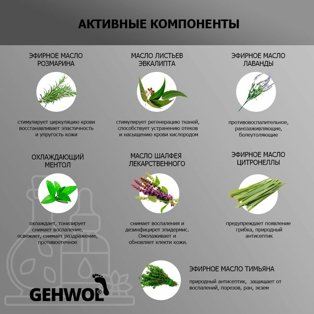 | Способ применения | наносится на чистую сухую кожу стоп, икр и на участки между пальцами. Кожа массируется до полного впитывания средства |