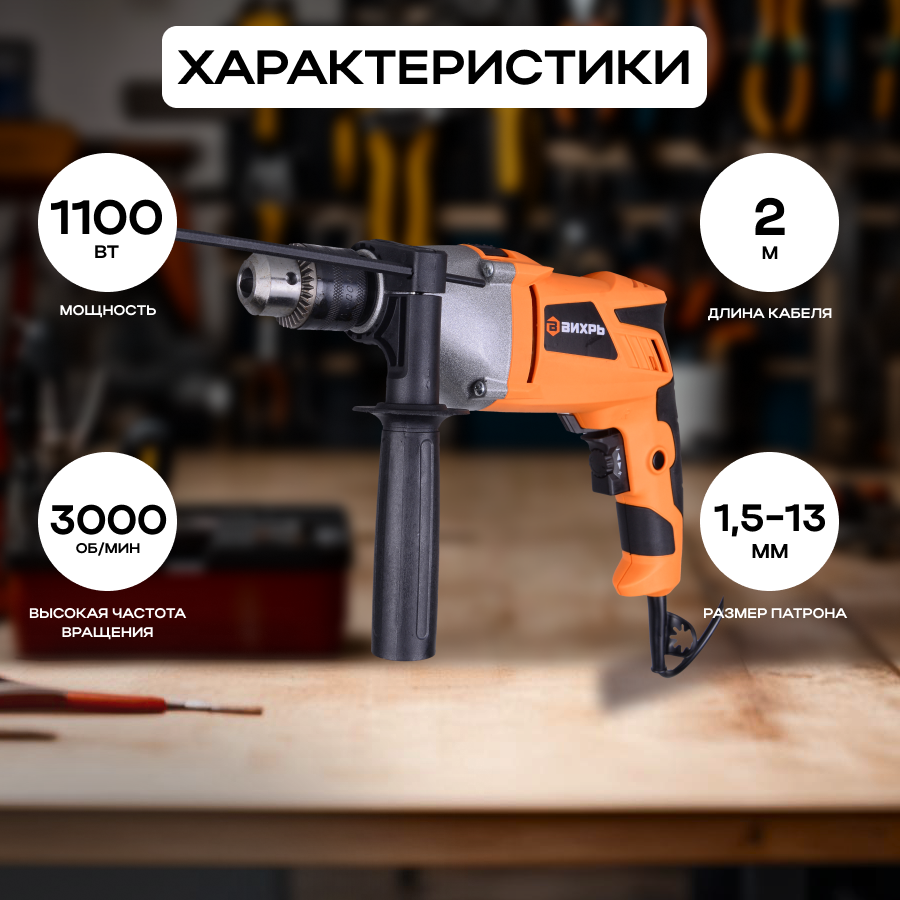 Дрель ударная ДУ-1100 Вихрь информация: