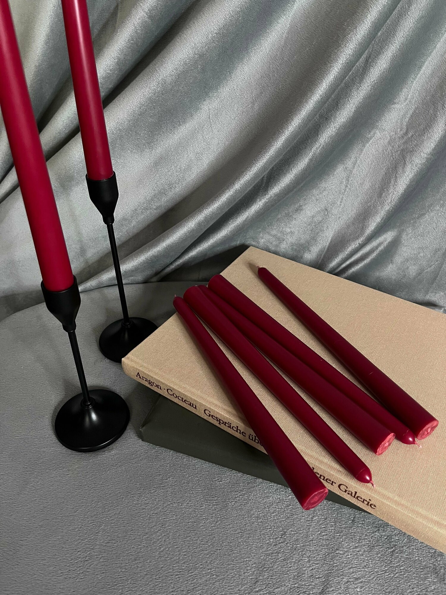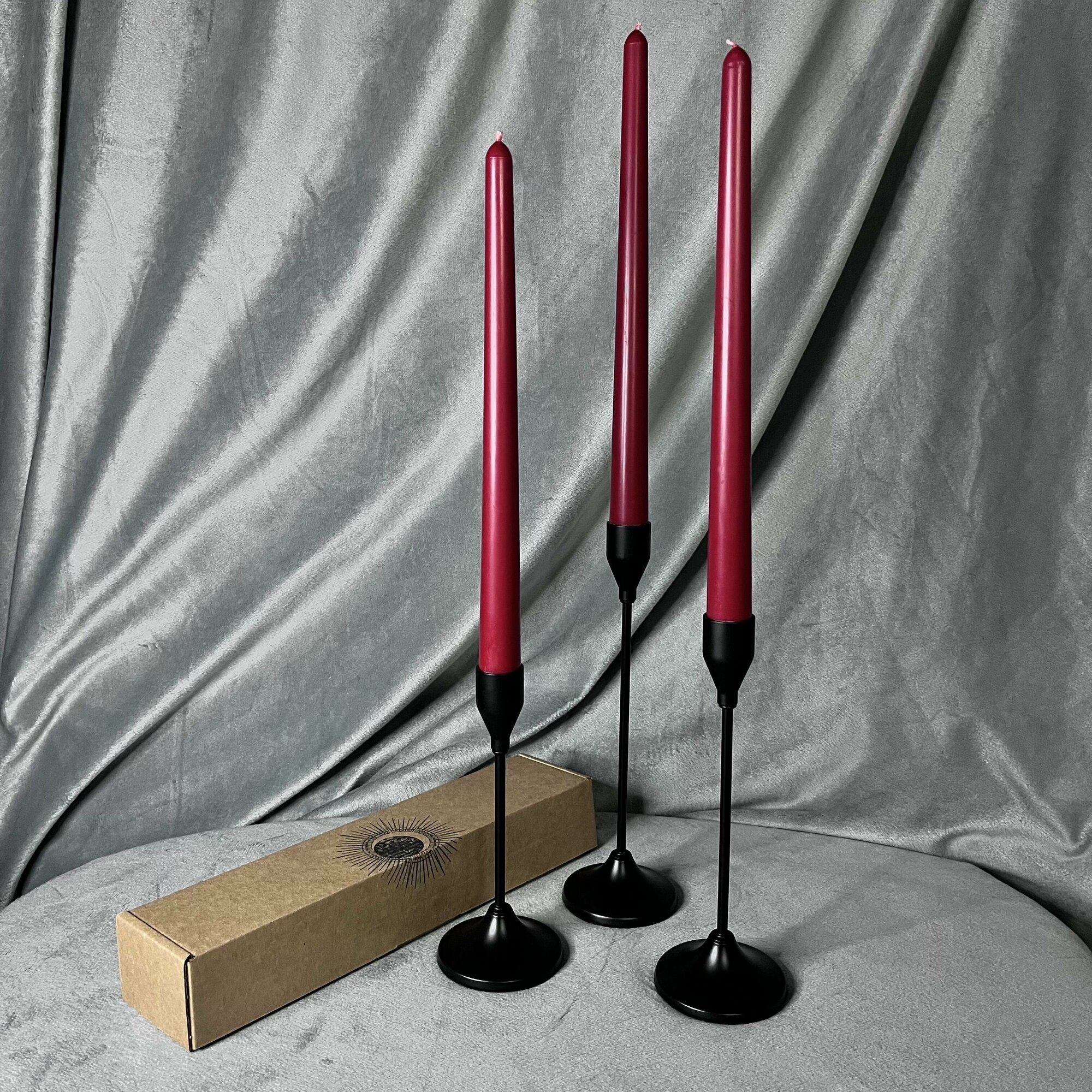 Отзывы на Набор конических свечей "Tuesday" (25.5x2.2 см, 3 шт.) ручной работы. Декоративные свечи тёмно-красного цвета.