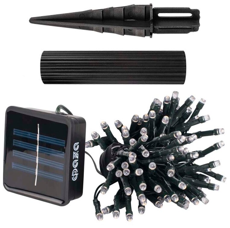 Светильник светодиодный SLR-G01-100W садовый; гирлянда 100 бел. LED солнечная батарея | код 5027305 | ФАZА (9шт.в упак.)
