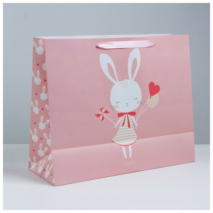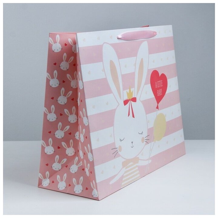 Подарочный пакет Riota "Сердечки", прямоугольный, 39x27x17 см