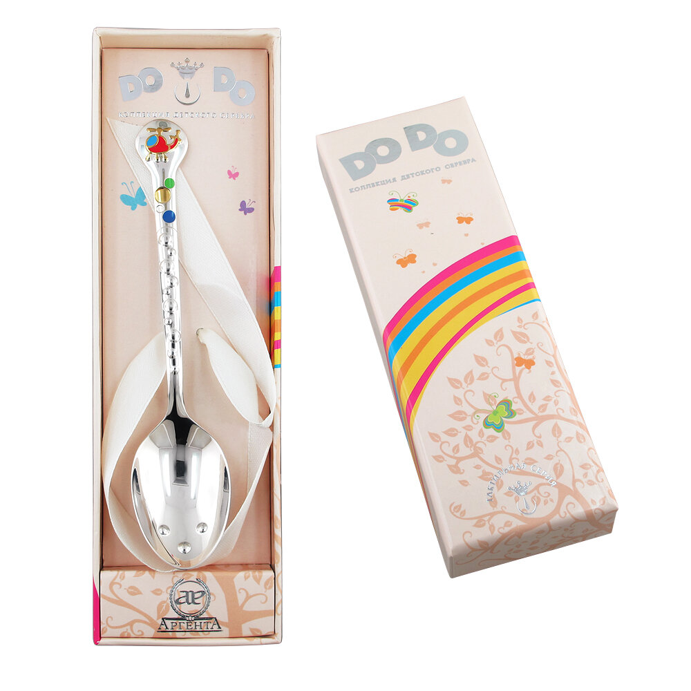10 цен на Серебряные ложка чайная, ложка детская dodo "вертолетик" ч/п с эм+футляр,АргентА,Серебро,Без вставки,Вес - 21.81 гр.