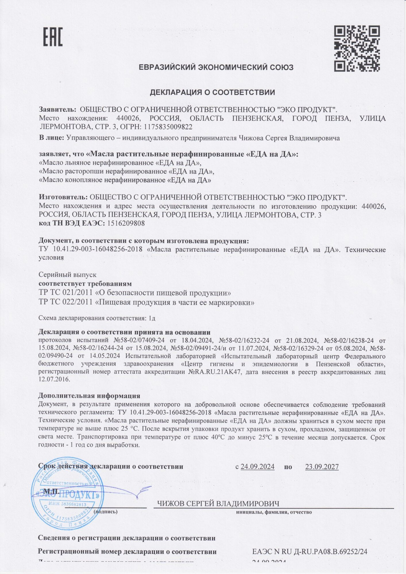 10 цен на Масло расторопши "Еда на Да!" нерафинированное с селеном, 250 мл