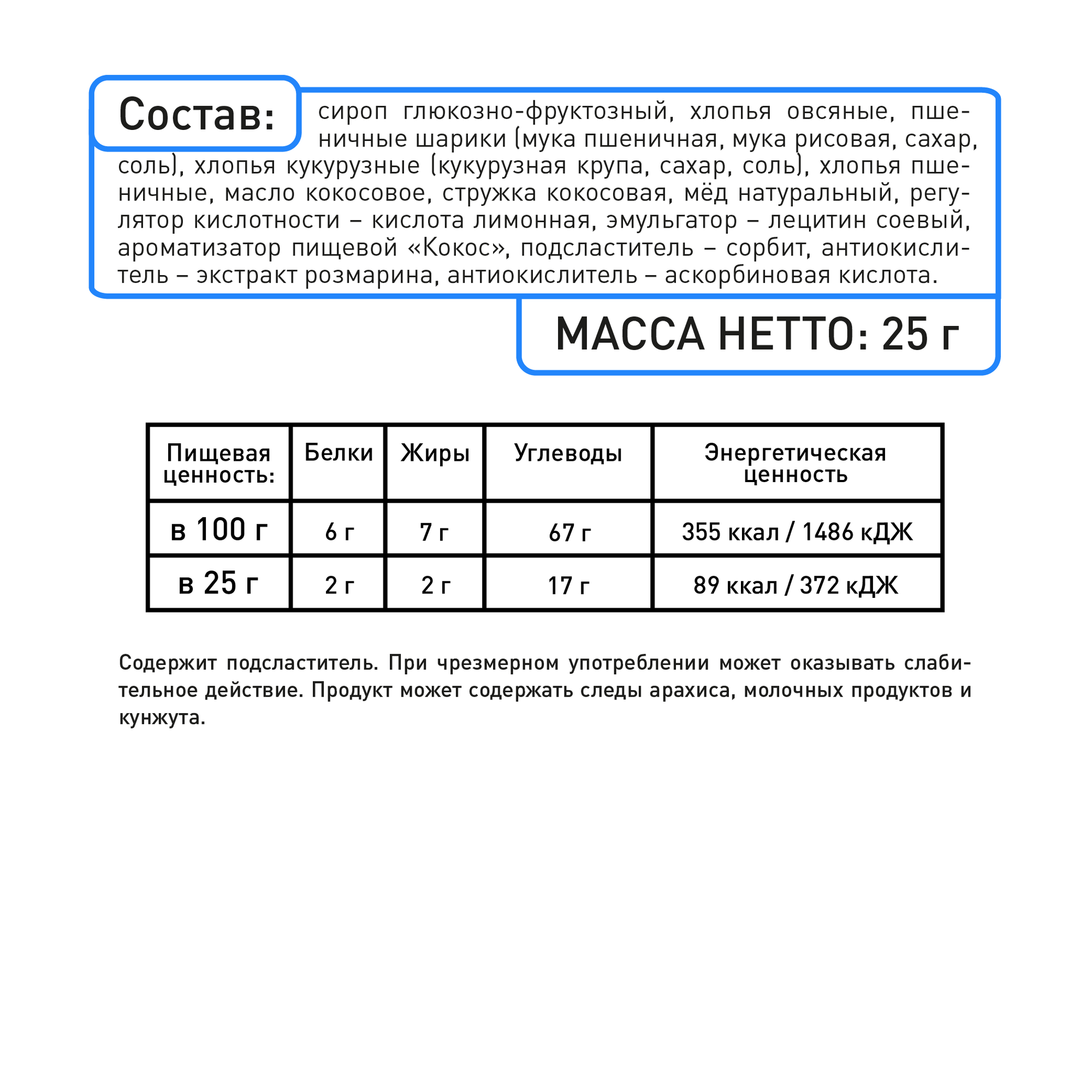 Батончик мюсли MustHave Полезный перекус "Кокосовый микс" 25г (25шт) информация: