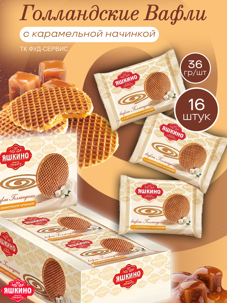 Вафли Яшкино Голландские с карамельной начинкой 16шт по 36г. информация: