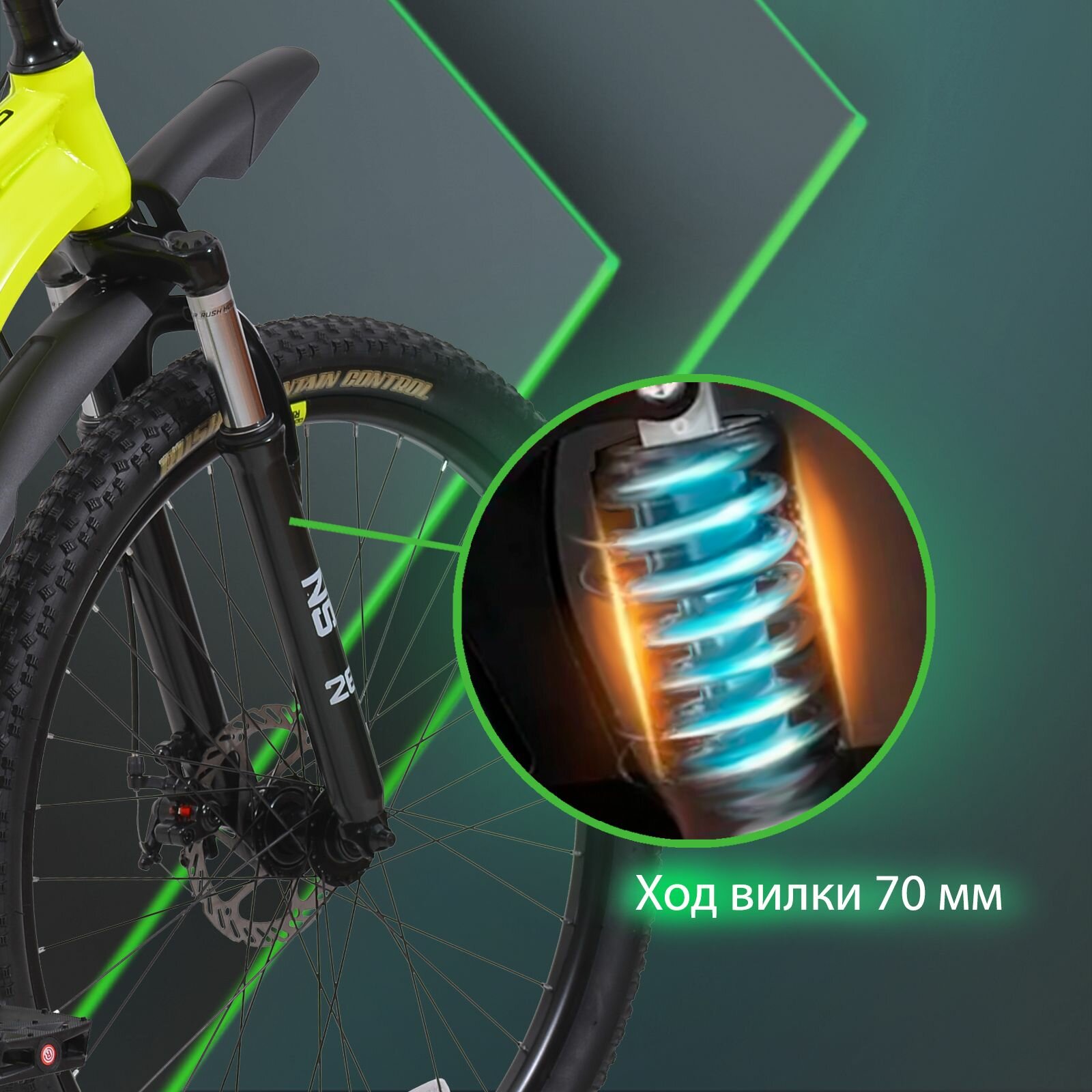 Велосипед горный дисковый 26" рост 140-155см 7 скоростей желтый рама 14" велик 8 лет 9 лет 10 лет переключатель SHIMANO скоростной RUSH HOUR NX 605 22 390 ₽