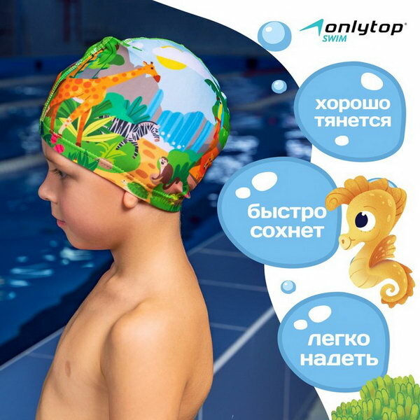 Отзывы на Шапочка для плавания детская "Сафари", тканевая, обхват 46-52 см