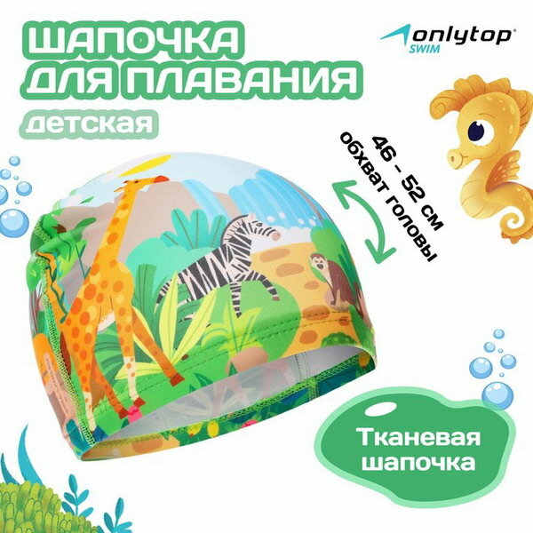 10 цен на Шапочка для плавания детская "Сафари", тканевая, обхват 46-52 см
