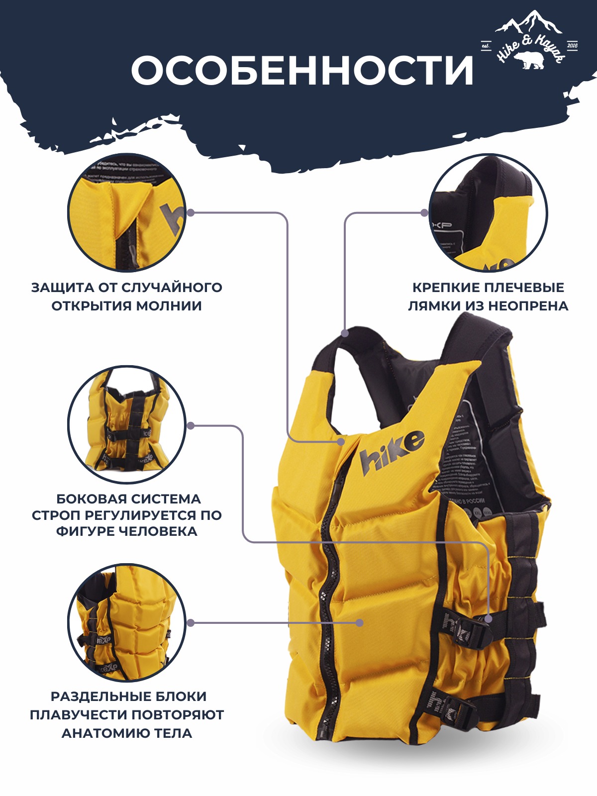 Жилет страховочный плавательный Standart hikeXp, желтый, размер S / Спортивный спасательный жилет для рыбалки, водных видов спорта, SUP