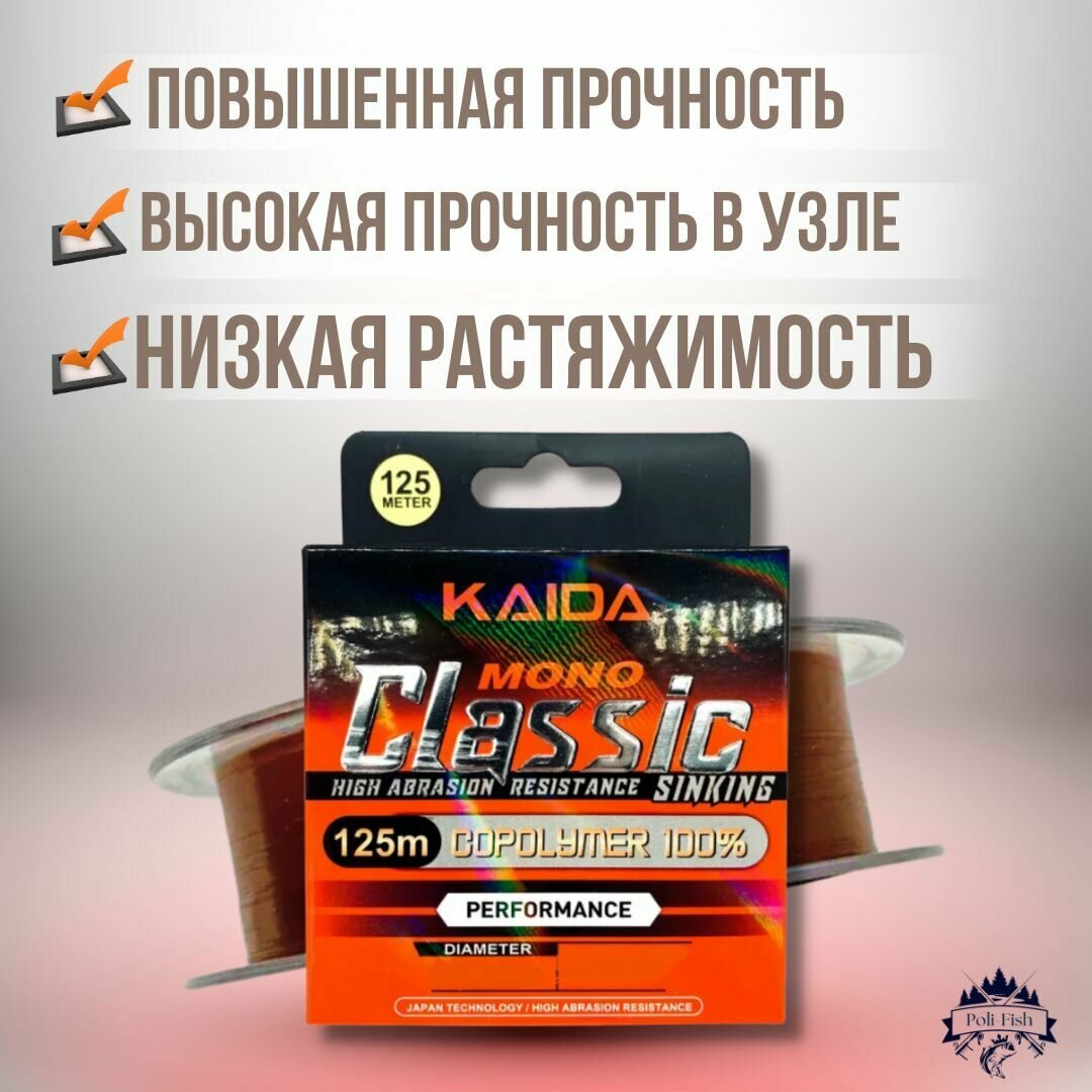 Леска монофильная Kaida Mono Classic толщина - 0,25мм тест - 8.46кг длина - 125м цвет - коричневый