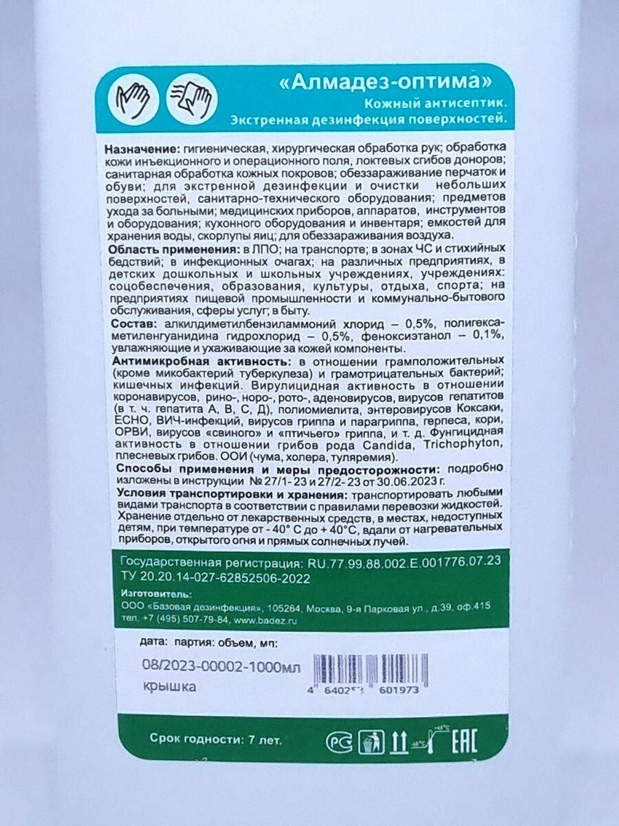 Антисептик для рук без спирта, Алмадез оптима информация: