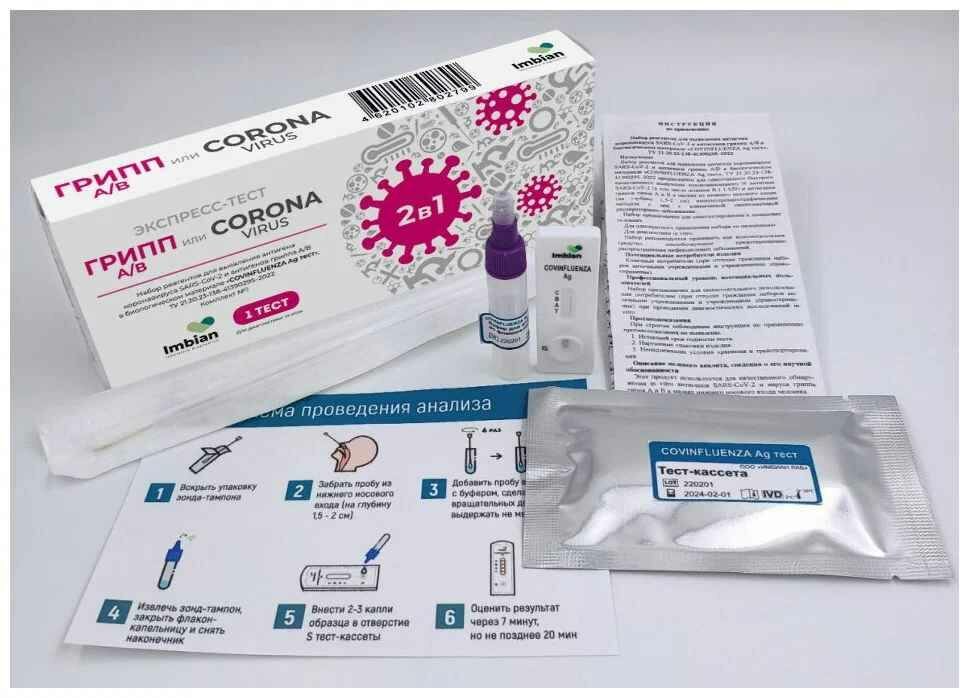 Тест Экспресс на антиген 2в1, Covid-19+грипп А/В, Imbian, 1шт KR-020/1