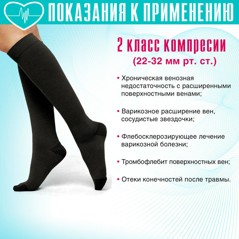 Гольфы компрессионные 2 класс (МТ-ГМ2(п)-Ч/2-ЧЕРН), черный 2 информация: