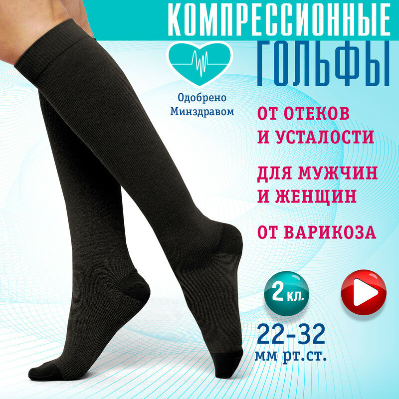 Гольфы компрессионные 2 класс (МТ-ГМ2(п)-Ч/1-ЧЕРН), черный 1 1 068 ₽