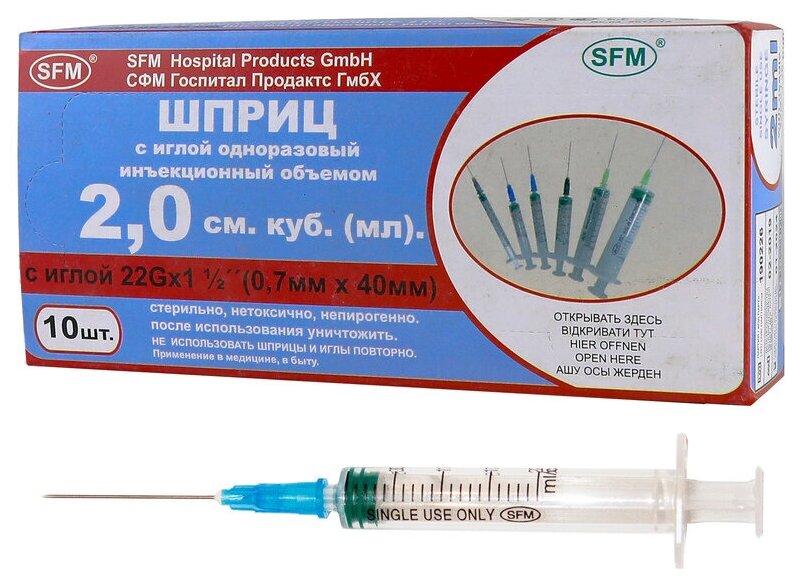 Отзывы на Шприц - 2мл. (3-х) SFM, Германия однораз. стер. с надетой иглой 0,70 x 40 - 22G, упаковка №10 (без латекса) ( блистер)