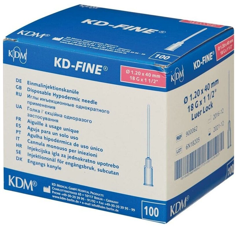908365 Игла одноразовая KD Fine 1,2х40мм 18G, 100 шт. информация: