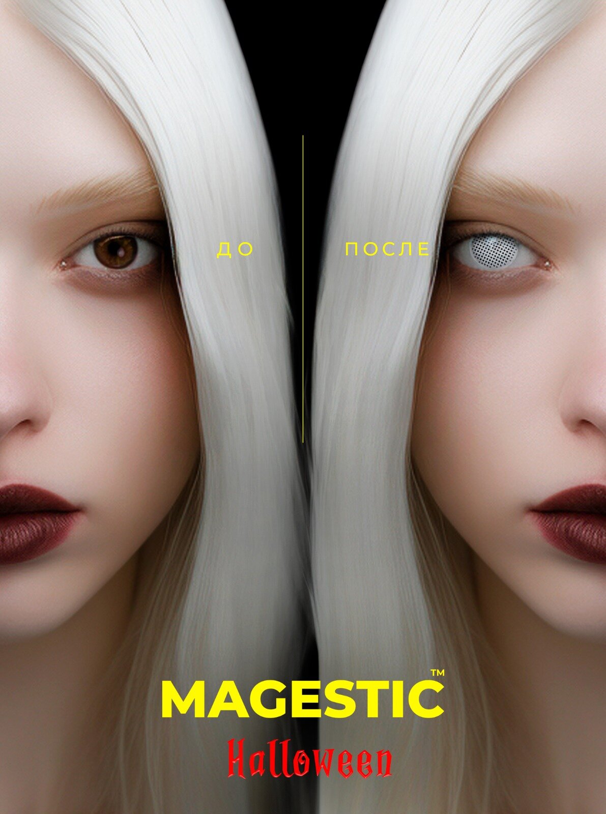 Цветные контактные линзы белые призрак для глаз MAGESTIC Halloween 1 пара, 12 месяцев, 0.00, кривизна 8,6 мм, диаметр 14,0 мм информация: