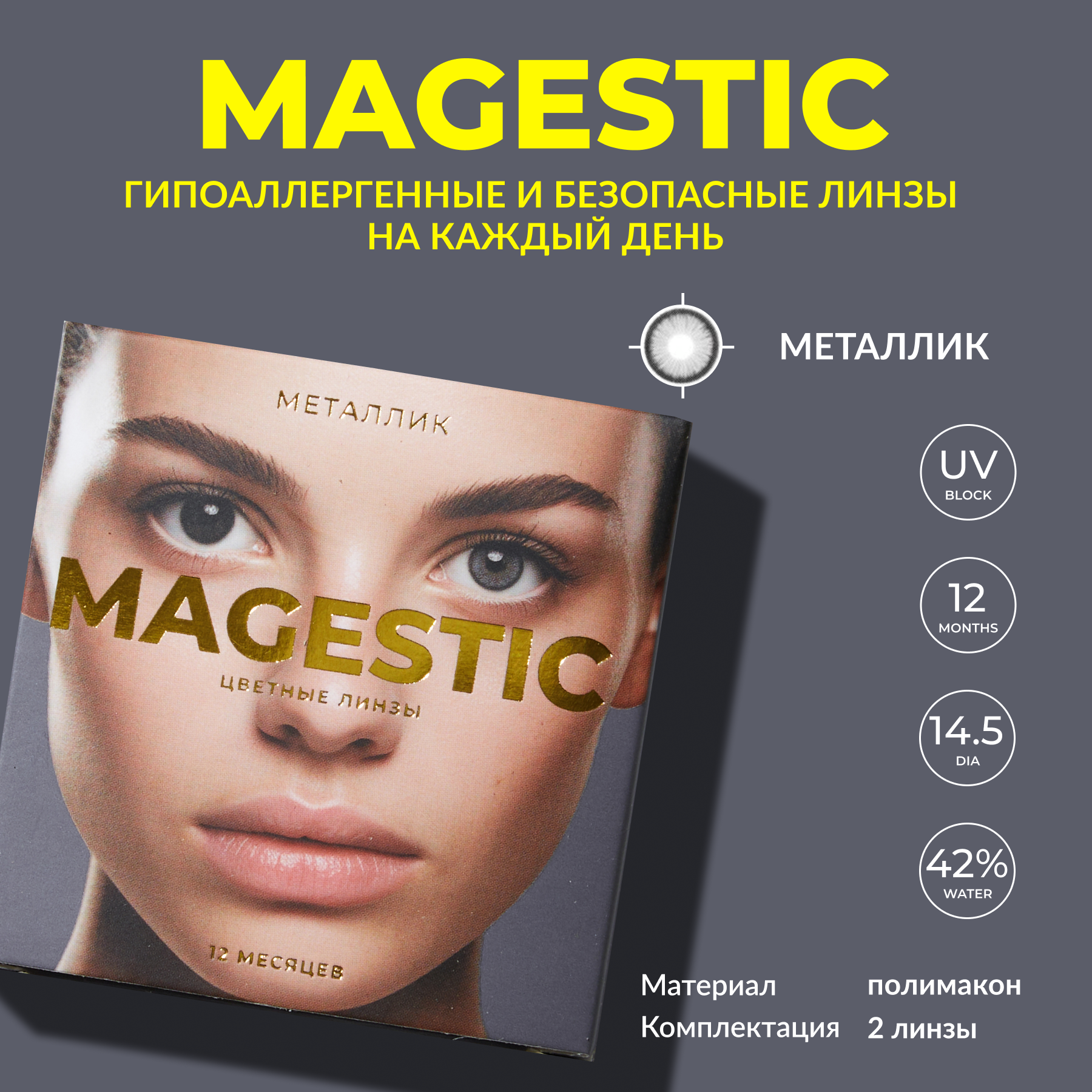 Цветные металлик контактные линзы для глаз MAGESTIC Classic 1 пара, 12 месяцев, 0.00, кривизна 8,6 мм, диаметр 14,0 мм
