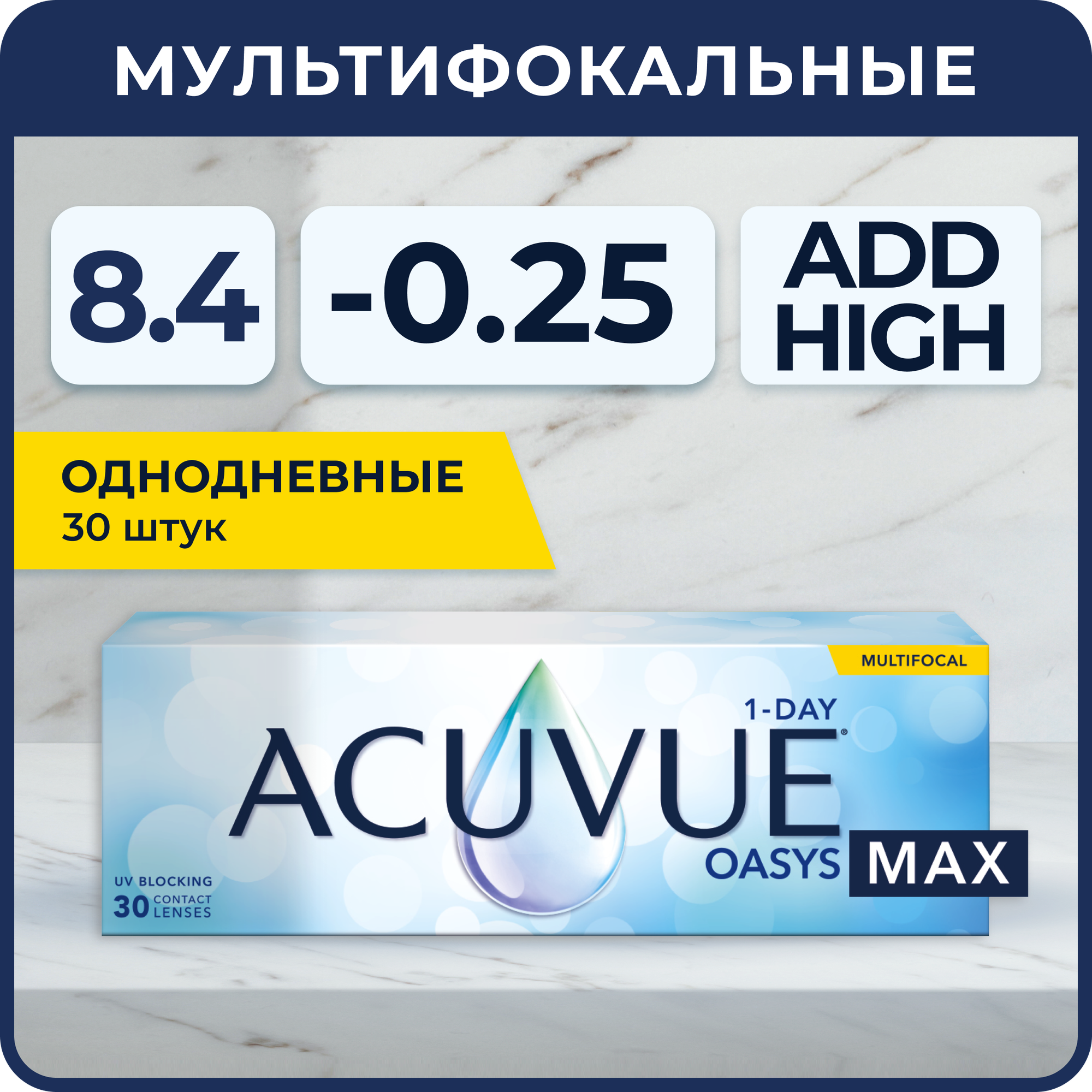 10 цен на Мультифокальные линзы ACUVUE Oasys Max 1-day Multifocal (30 линз) R 8.4 SPH -0.25 Аддидация HIGH, однодневные, прозрачные