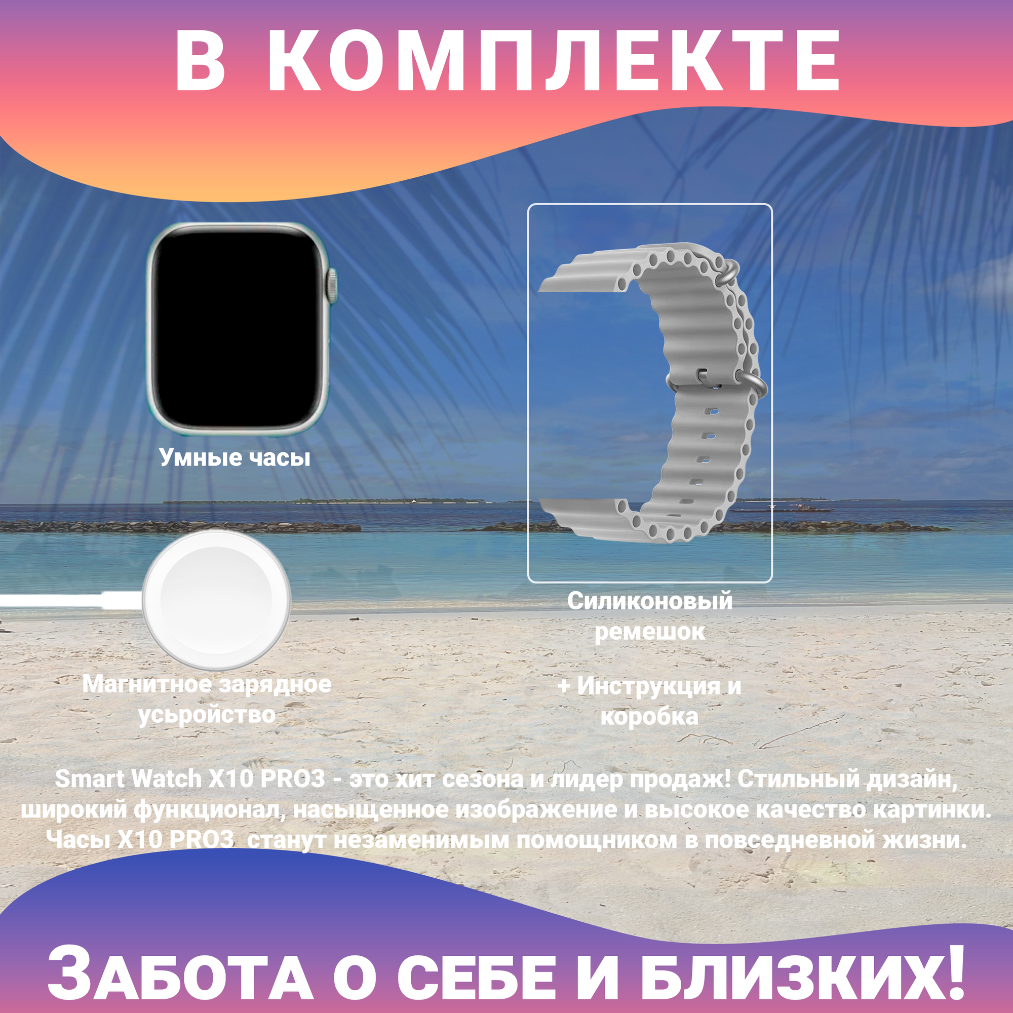 Умные смарт часы с изогнутым экраном, watch 10, X10 Pro3, 45 мм с NFC и беспроводной зарядкой, серебристые информация: