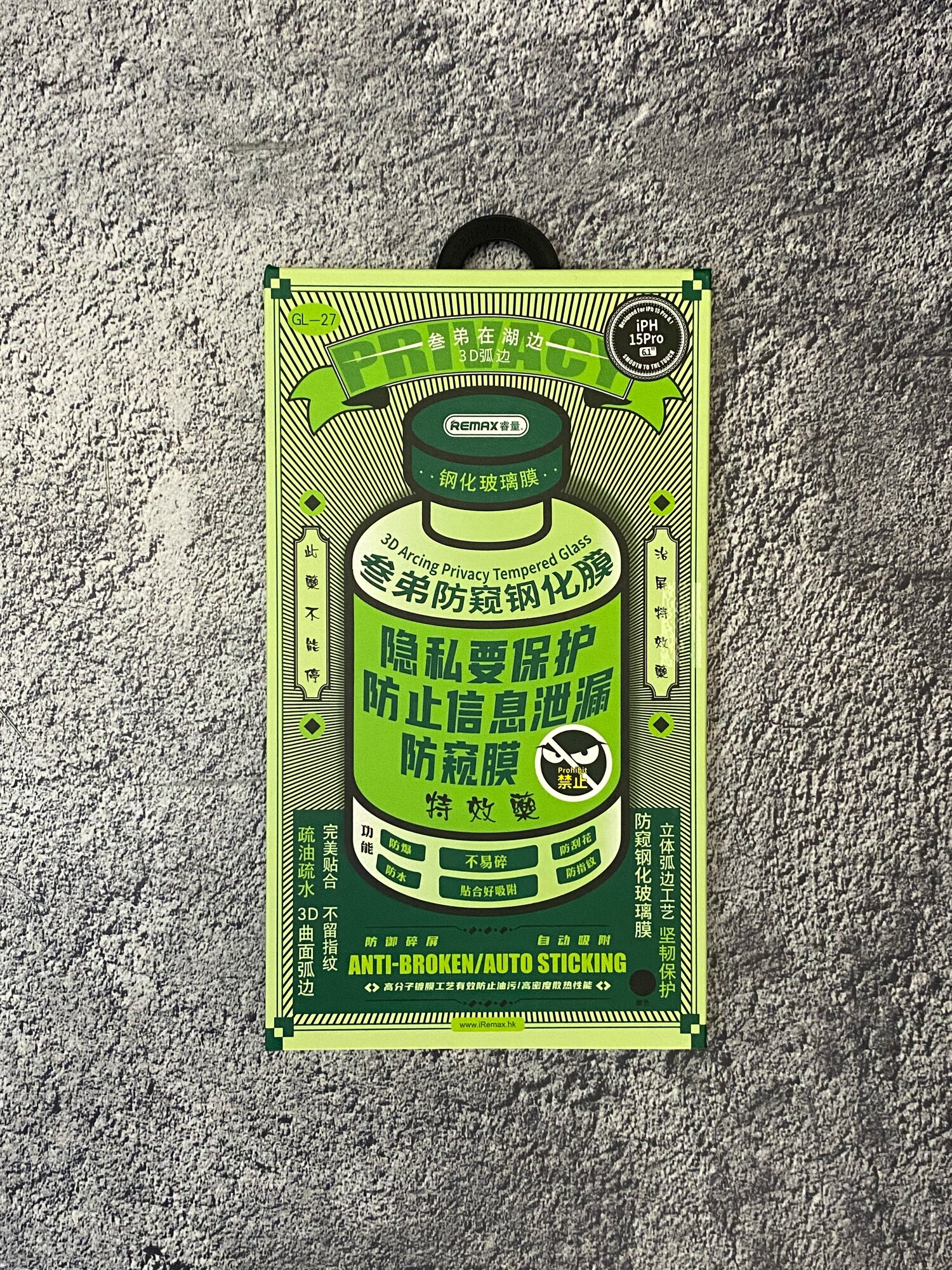 Стекло антишпион для iPhone 15 Pro, REMAX PRIVACY противоударное бронестекло для Айфон 15 Про информация: