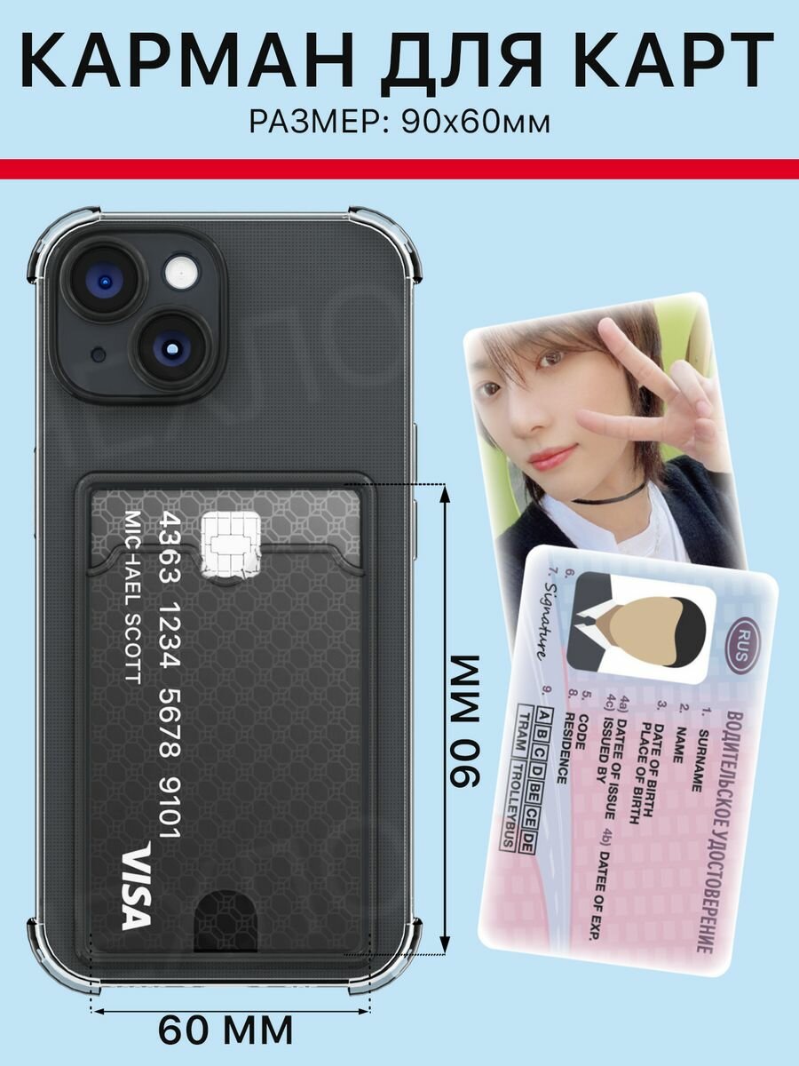 Чехол на Айфон 15 ( iPhone 15 чехол ) прозрачный силиконовый с карманом картохдером для карт 299 ₽