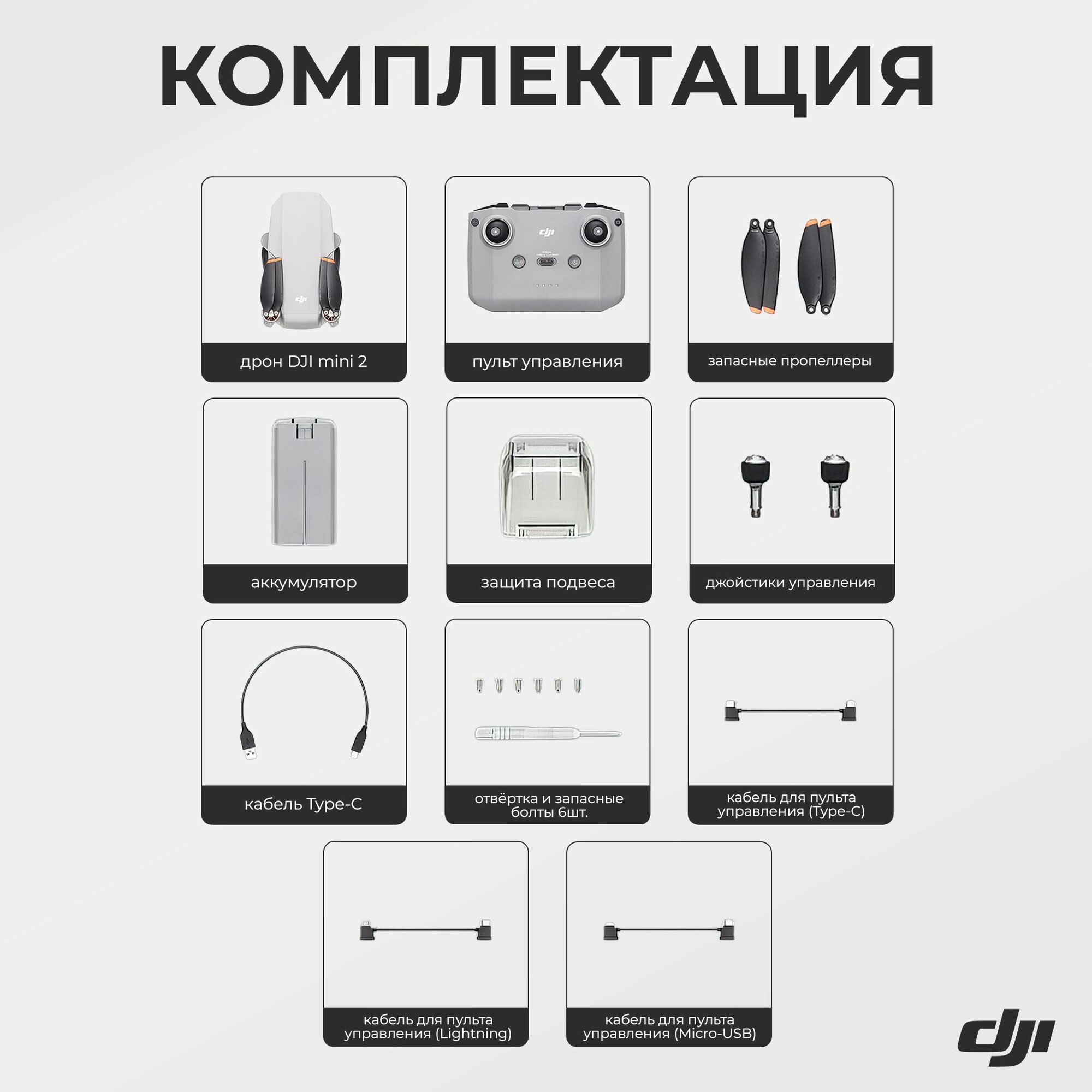 Квадрокоптер DJI Mini2 с камерой 4K, 31 минута полета, до 10 км дальности, GPS и WiFi информация: